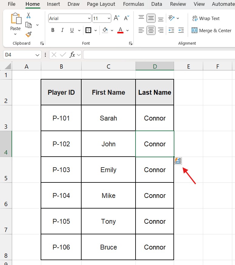 1. Type the desired result in the cell next to your data (e.g., type “John”).